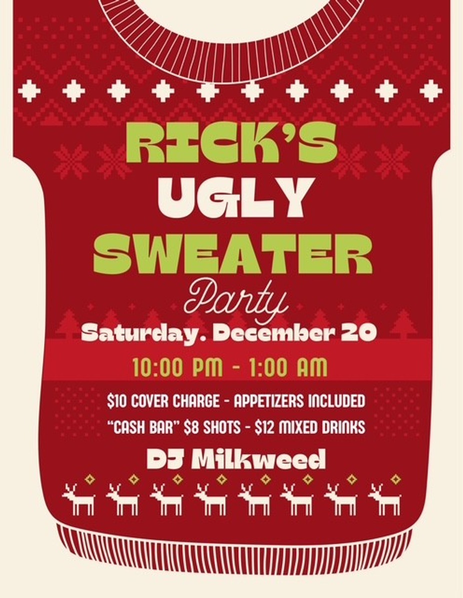 10pm-1amRick's Ugly Sweater PartySaturday, December 20th, 2025