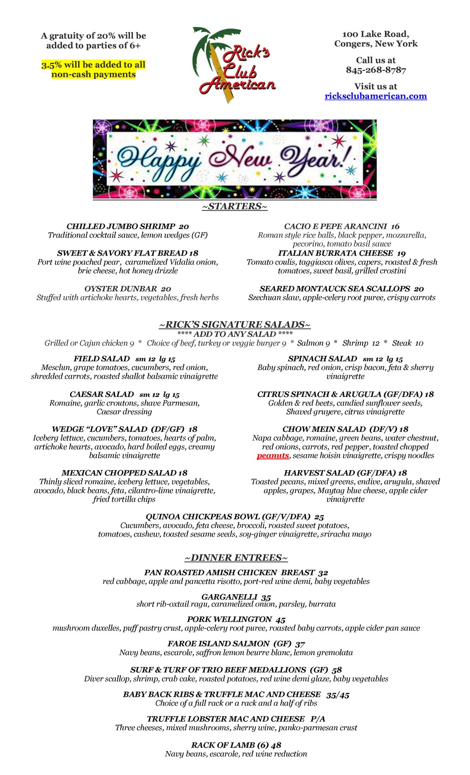 5:30pm-12amRick's NYE MenuWednesday, December 31st, 2025
